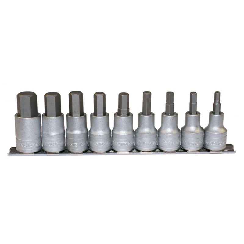 » Includes: M121505-C 1/2" Hex Bit Socket Metric 5mm; M121506-C 1/2" Hex Bit Socket Metric 6mm; M121507-C 1/2" Hex Bit Socket Metric 7mm; M121508-C 1/2" Hex Bit Socket Metric 8mm; M121509-C 1/2" Hex Bit Socket Metric 9mm; M121510-C 1/2" Hex Bit Socket Metric 10mm; M121512-C 1/2" Hex Bit Socket Metric 12mm; M121514-C 1/2" Hex Bit Socket Metric 14mm; M121517-C 1/2" Hex Bit Socket Metric 17mm