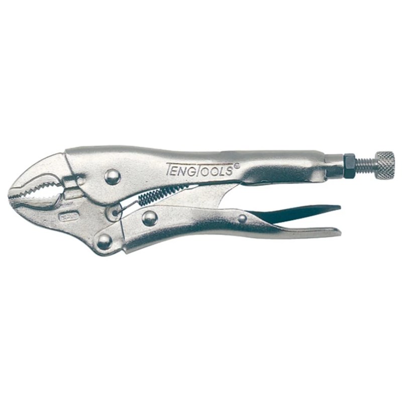 The Teng Tools 401-10 Curved Jaw Power Grip Plier is a robust and versatile locking plier designed for secure gripping and controlled clamping. Featuring a self-locking mechanism with a release lever, it provides firm hold and quick release when needed. Manufactured from chrome molybdenum and equipped with a wire cutter and crimper function, it is ideal for repeated and demanding applications.