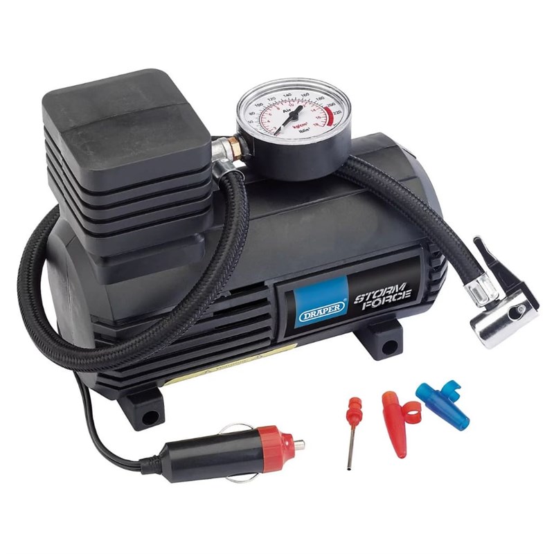 The Draper 81023 Storm Force Mini Analogue Air Compressor is a compact and portable solution for inflating tyres, sports equipment, and other inflatables. Featuring an easy-to-read analogue gauge and straightforward operation, it delivers reliable air pressure for everyday tasks. Ideal for use in cars, garages, and at home, this mini compressor combines convenience, versatility, and dependable performance.
