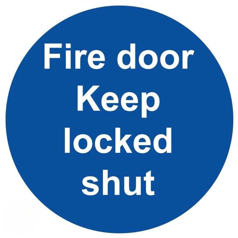 » Clearly instructs that the fire door must remain locked shut at all times