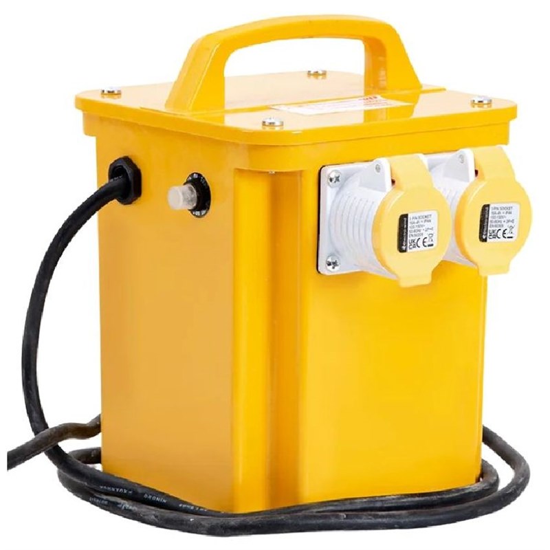 » Used for stepping down UK mains voltage (240V) to 110V for safe site use