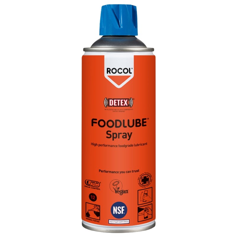 The Rocol 15710 FOODLUBE Food Grade Lubricant Spray is a high-performance, non-toxic multi-purpose lubricant designed for clean environments such as food and pharmaceutical facilities. It highlights superior penetration, water displacement, and corrosion protection, forming a long-lasting protective film suitable for light lubrication of small components and maintenance tasks.