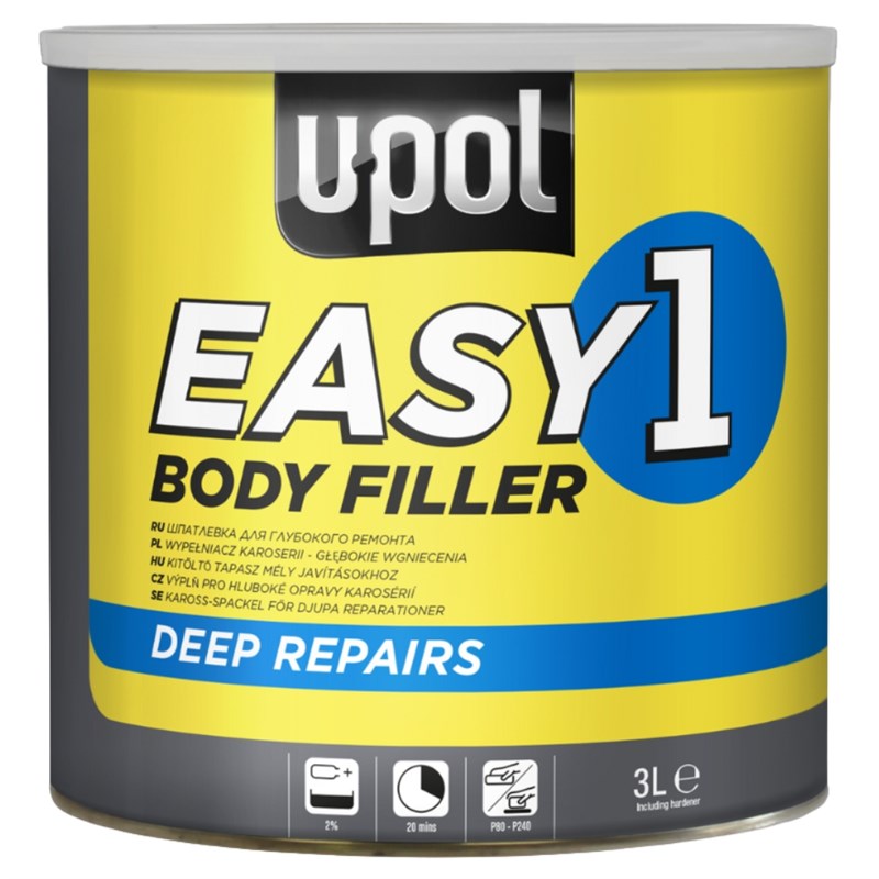 The U-POL EASY/7 Easy 1 Lightweight Body Filler is an easy-to-use polyester body filler designed for deep repairs with a smooth, workable consistency. It highlights a lightweight, non-sag formula that spreads easily and shapes quickly, making it suitable for both vertical and horizontal applications. Engineered using advanced resin technology, it delivers consistent, professional-quality results across a wide range of substrates.