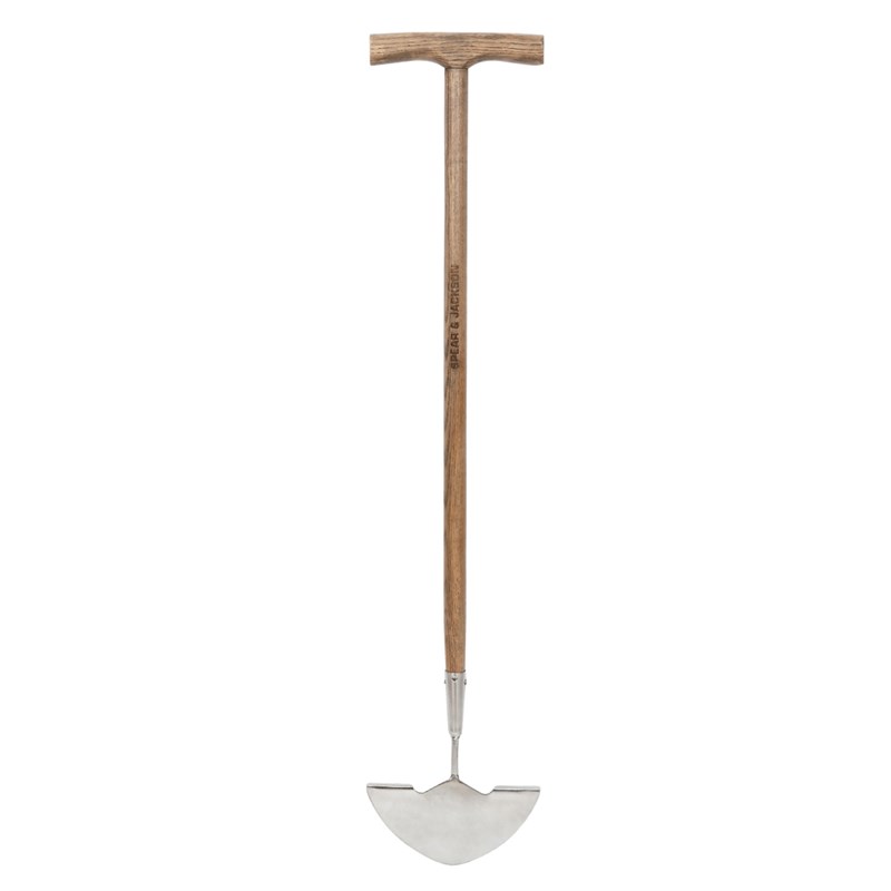 The Spear & Jackson 4811EK Traditional Stainless Edging Knife is a classic garden tool crafted for precise lawn edging and a clean, professional finish. It highlights a mirror-polished stainless steel head for rust resistance and easy cleaning, a weatherproofed hardwood shaft for durability, and a treaded blade that enhances comfort and control during use.