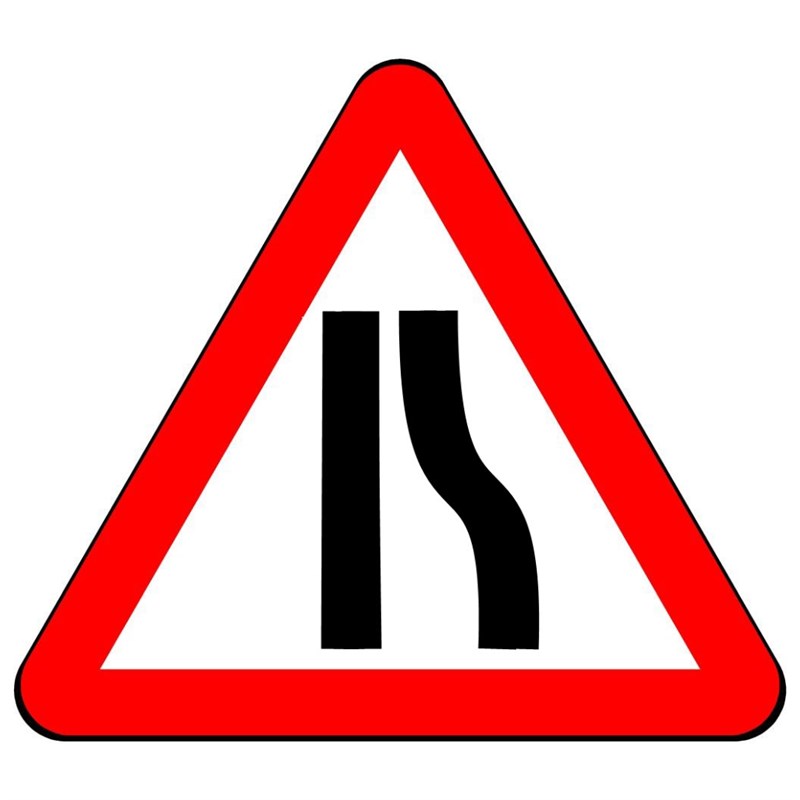 Road Sign "Road Narrows Off Side" 750mm Triangle