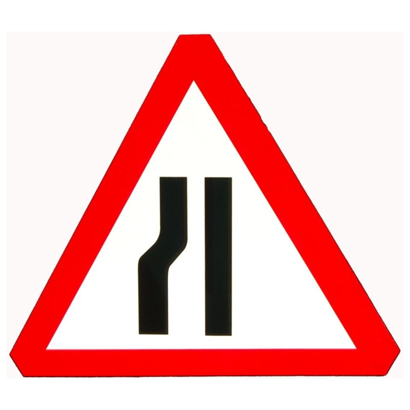 Road Sign "Road Narrows Near Side" 750mm Triangl