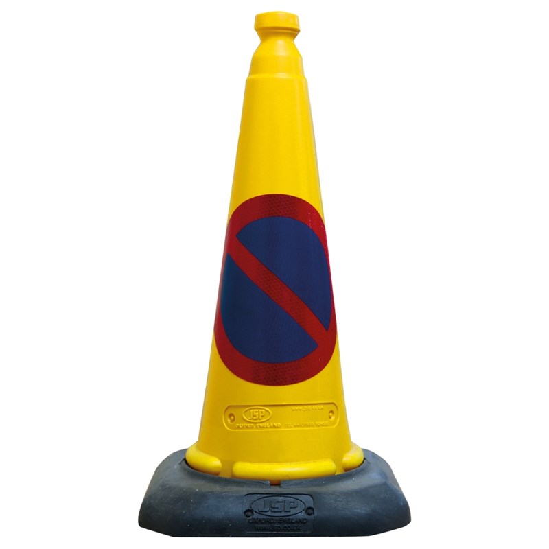 The JSP JAB041-640-200 Dominator Reflective "No Waiting" Cone is a durable two-part safety cone designed for clear parking and traffic control. It highlights a UV-stabilised yellow LDPE top, a heavy-duty recycled composite base, and a reflective “No Waiting” roundel for high visibility in all conditions.