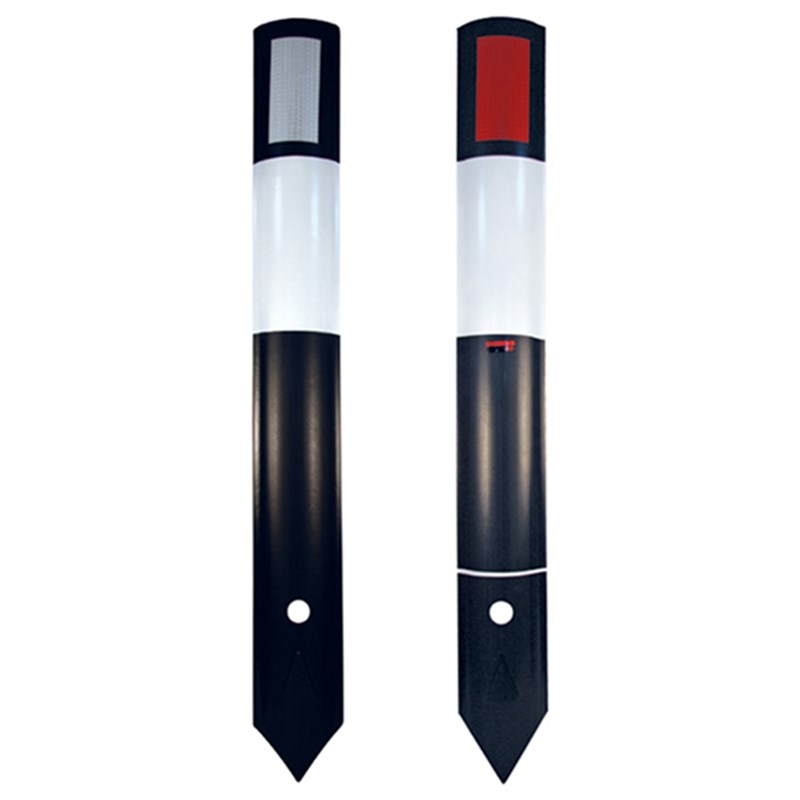 The JSP HEV040-106-500 Wychwood Flexible Verge Post is a durable springback marker post designed for roadside visibility and safety. It highlights a moulded flexible design with a large Class R2 reflective area compliant with RI EN 12899-1, ensuring high visibility and reliable performance in all weather conditions.