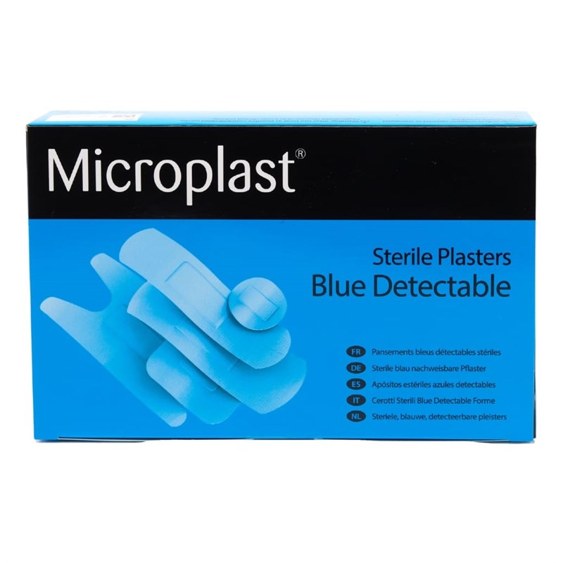 The Microplast 86933 Blue Detectable Plasters (Pack of 100) are specially designed for use in food preparation and catering environments. Featuring a bright blue colour and integrated metal strip, they are easily detectable both visually and by metal detectors. Ideal for ensuring hygiene and safety compliance in kitchens and food handling areas.