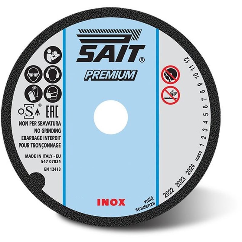 The Sait 05060 PREMIUM-PU A 60 T Flat Cutting Wheel is suitable for universal use on portable machines with a variety of metals such as steels, ferrous, and non-ferrous metals. Both tough and durable, this cutting wheel offers good long-lasting life, and high cutting speeds.