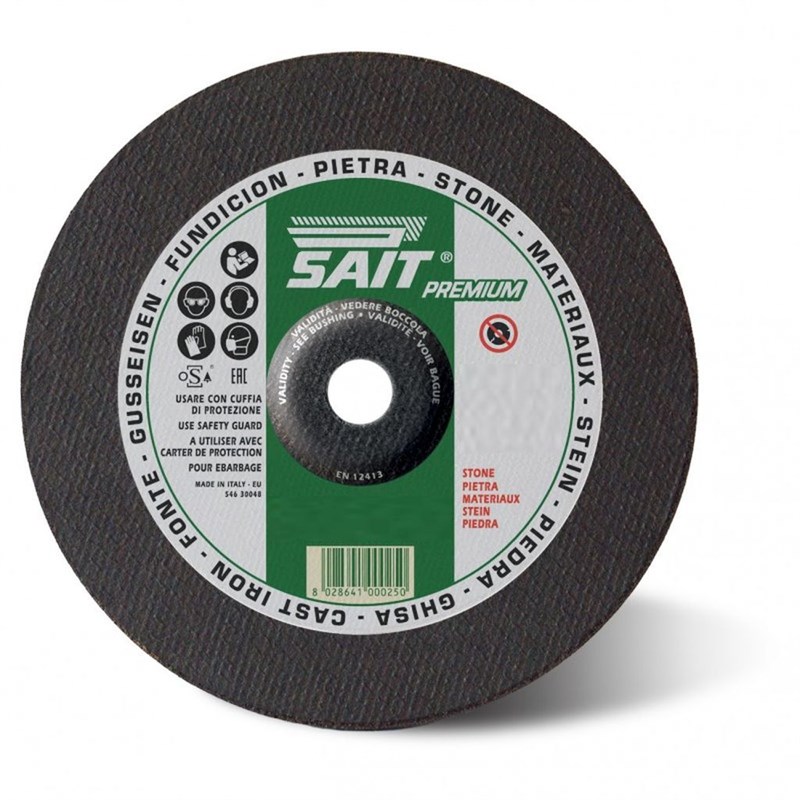 The Sait 00004 PREMIUM-DS C 24 N Depressed Centre Grinding Wheel is specially designed for portable machines with very hard materials such as cast iron and concrete.