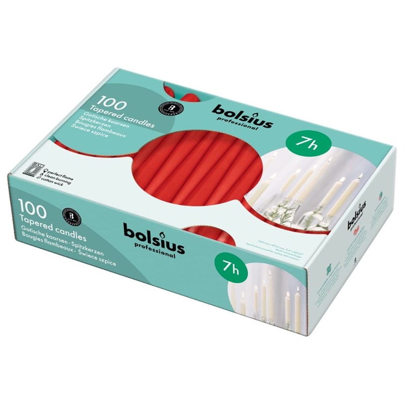 The Bolsius 25CMR Tapered Candles (Box of 100) are elegant and high-quality candles ideal for creating a warm and inviting atmosphere. Measuring 18cm in height, they offer a clean, steady burn and are perfect for use in restaurants, events, and home dining. Supplied in a box of 100, they provide excellent value for bulk decorative or functional use.