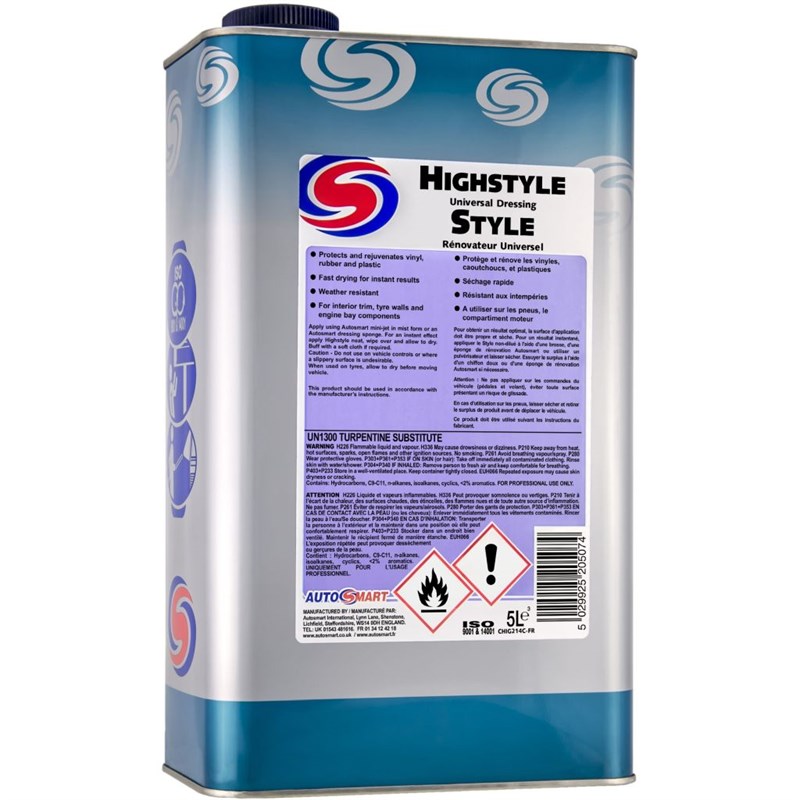 The Autosmart CHIG214C Highstyle Universal Dressing is a very versatile dress which leaves a weather resistant finish for all tyres, vinyl, plastic, both inside and out. Highstyle provides fast drying for instant results and offers unbeatable gloss and lustre.