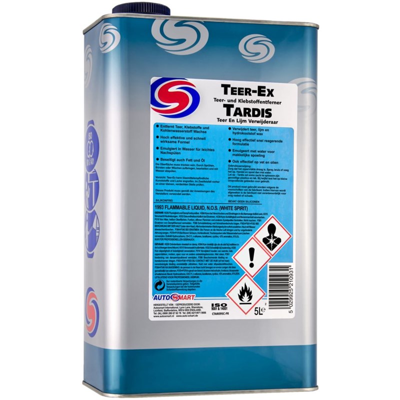 The Autosmart CTAR014C Tardis Tar & Glue Remover is a fast acting solvent based tar and adhesive remover which contains emulsifiers for easy rinsing. Tardis features a highly effective, fast acting formulation and is designed to remove tar, adhesives, and hydrocarbon wax.