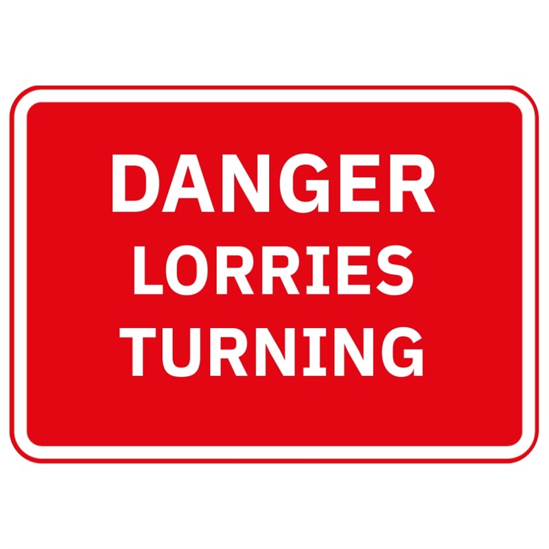The Viz Reflectives "Danger Lorries Turning" Road Sign is a high-visibility warning plate designed to alert road users to heavy vehicles manoeuvring in the area. It highlights a reflective finish for enhanced visibility, helping to improve safety in environments with frequent lorry movements.
