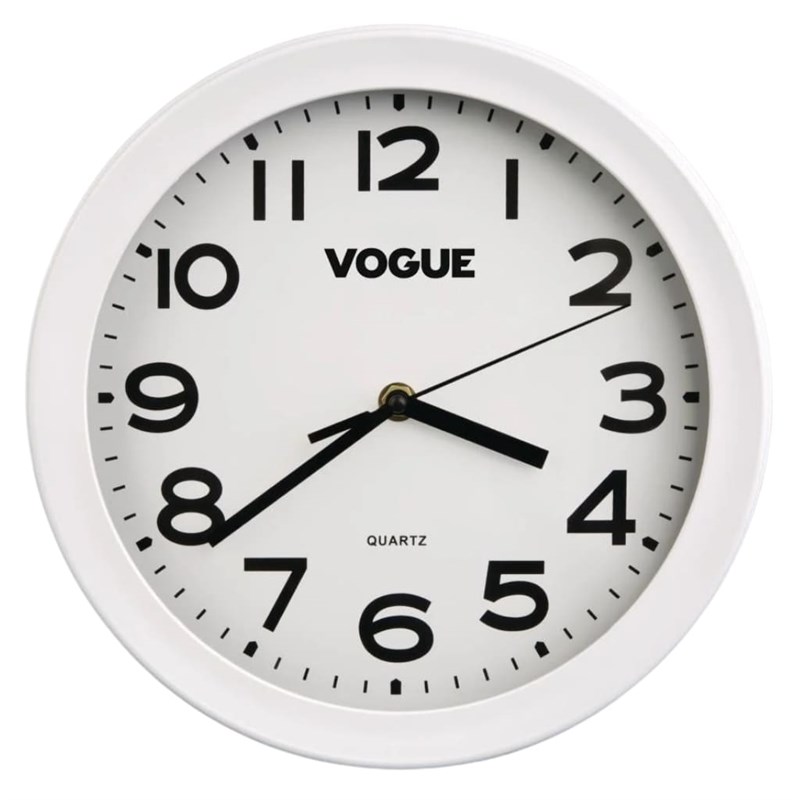 The Vogue K978 Round Kitchen Clock is a stylish and practical timekeeping accessory designed for use in busy kitchen environments. Featuring a clear, easy-to-read face with bold black numbers and a durable casing, it helps chefs and kitchen staff maintain precise timing. Ideal for commercial and domestic kitchens, this wall-mounted clock combines functionality with a clean, modern design.