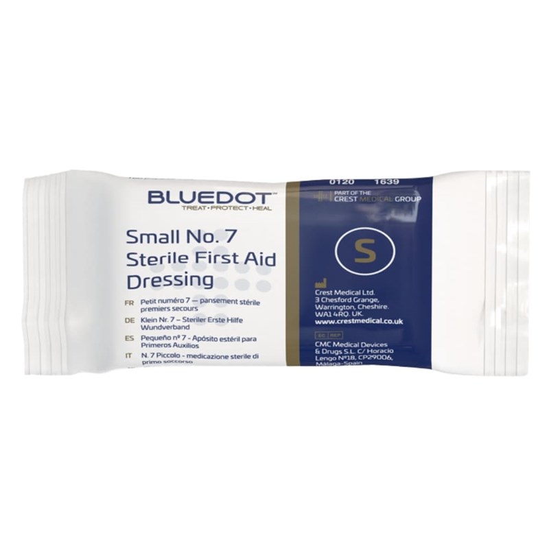The Blue Dot 30FBDT07 Small No7 Finger Dressing is a compact and sterile dressing specifically designed for treating finger injuries. Featuring a low-adherent pad and a secure wrap, it provides effective protection and absorption while allowing easy application. Ideal for first aid kits in workplaces, kitchens, and general use where minor finger wounds are common.