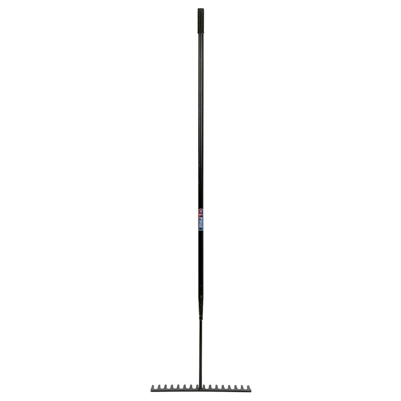 The Spear & Jackson 3886BC Heavy Duty Flat Tooth Asphalt Rake is a professional-grade tool engineered for demanding tarmac and asphalt work. It highlights a strong carbon steel head with 16 flat teeth for efficient material spreading, a wide 470mm (18.5") working width, and an extended tang and socket design that keeps the handle safely away from hot surfaces.