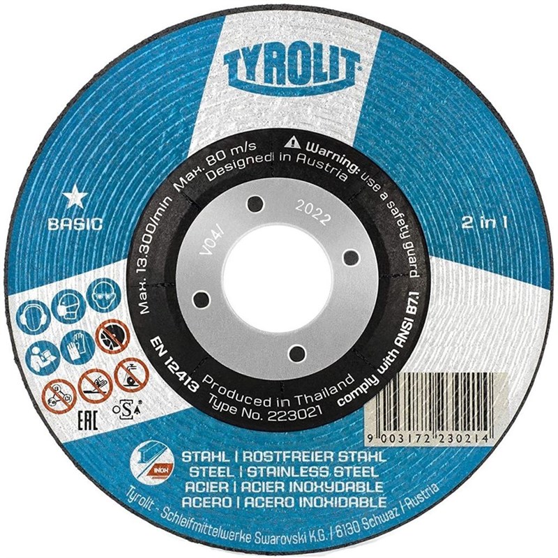 The Tyrolit 223021 Metal Cutting Disc provides easy handling, fast work, and high stock removal performance as well as long wheel lifetime. This universal cut-off wheel is suitable for a range of applications, such as cutting metal sheets, profiles, pipes, rods, and solid material.