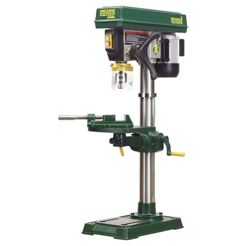 The Record Power DP58B Heavy Duty Bench Drill is a robust and precise machine designed for accurate drilling in wood, metal, and plastics. Featuring a powerful 550W induction motor and a cast iron construction, it offers stability and consistent performance. With 12-speed settings, an adjustable table, and a depth stop for repeatable drilling, this bench drill is ideal for both professional workshops and serious home users.