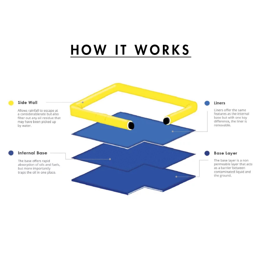 » Measures 2000mm x 1370mm, providing wide-area spill containment