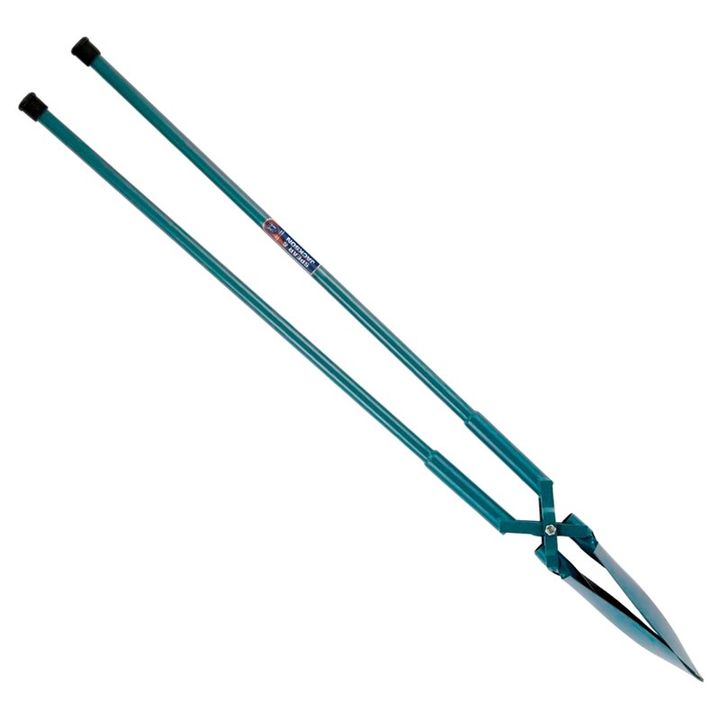 The Spear & Jackson DSH/TH Double Shovel Holer is a heavy-duty digging tool designed for efficiently creating post holes and clearing rubble. It highlights double hardened and tempered carbon steel blades for exceptional strength, durable tubular steel handles for leverage, and a wide 280mm (11") maximum opening for effective material removal.
