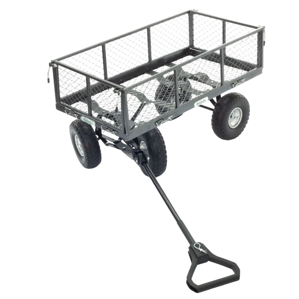 » Dual functionality—pull by hand or easily connect to a ride-on lawnmower or garden tractor using the built-in tow hitch