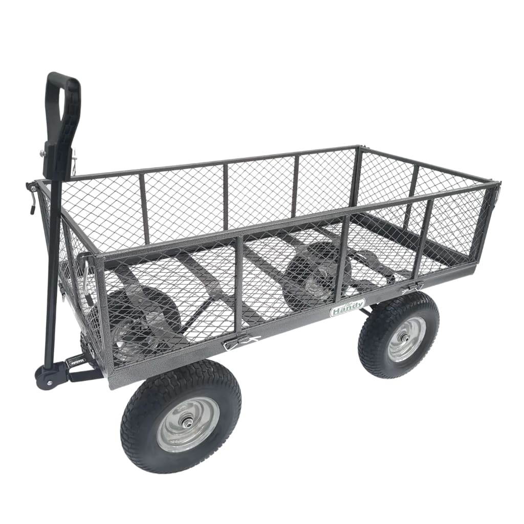 The Handy THLGT Large Garden Trolley is a versatile and durable transport solution ideal for moving heavy loads around the garden, allotment, or yard. Featuring a strong steel frame, large pneumatic tyres, and a tipping function, it allows for easy handling of soil, tools, plants, and more. Perfect for making outdoor tasks more efficient and less strenuous.