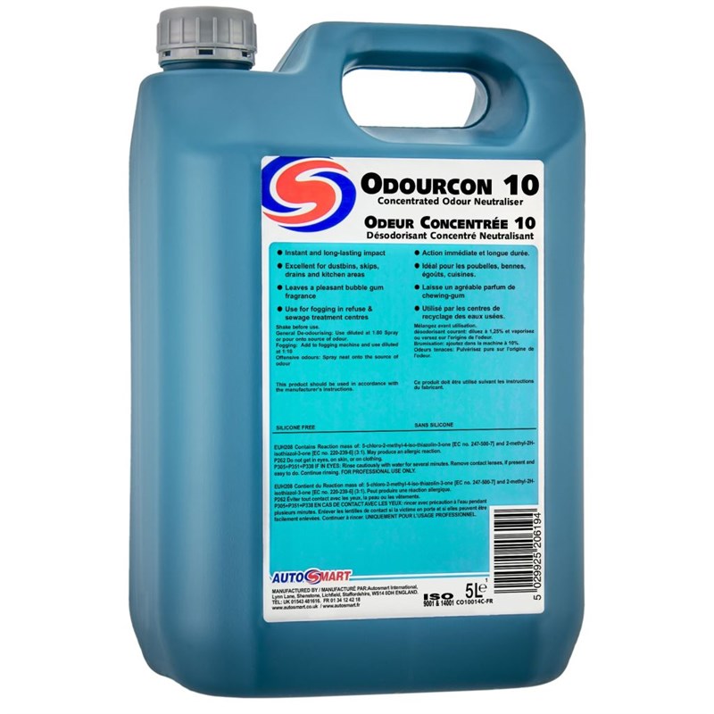 The Autosmart CO10014C Odourcon 10 Concentrated Odour Neutraliser is instantly effective against lingering odour in skips, dustbins, drains, rubbish tips, and recycling containers. Leaves a pleasant, long-lasting bubble gum fragrance.
