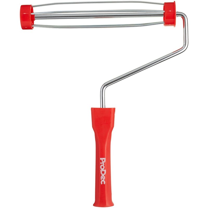 The ProDec PRFR002 Screw Fit Plastic Handle Roller Frame features an 8mm diameter main bar for durability to withstand heavy duty use, maximising paint application and reducing the effort needed to achieve good coverage. A robust 5-wire cage holds the roller securely in place so it won't slip and slide about, giving even paint application and a trade quality finish with a good roller sleeve.