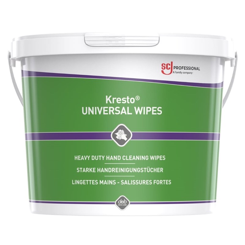 The Deb Stoko UNV150W Kresto Universal Heavy Duty Hand Cleansing Wipes are powerful, pre-moistened wipes designed to remove tough industrial contaminants such as oil, grease, and adhesives without the need for water. Featuring a textured surface for effective cleaning and a skin-friendly formula, these wipes are ideal for use on the go in workshops, garages, and construction sites. Convenient and hygienic, they support hand cleanliness in demanding work environments.