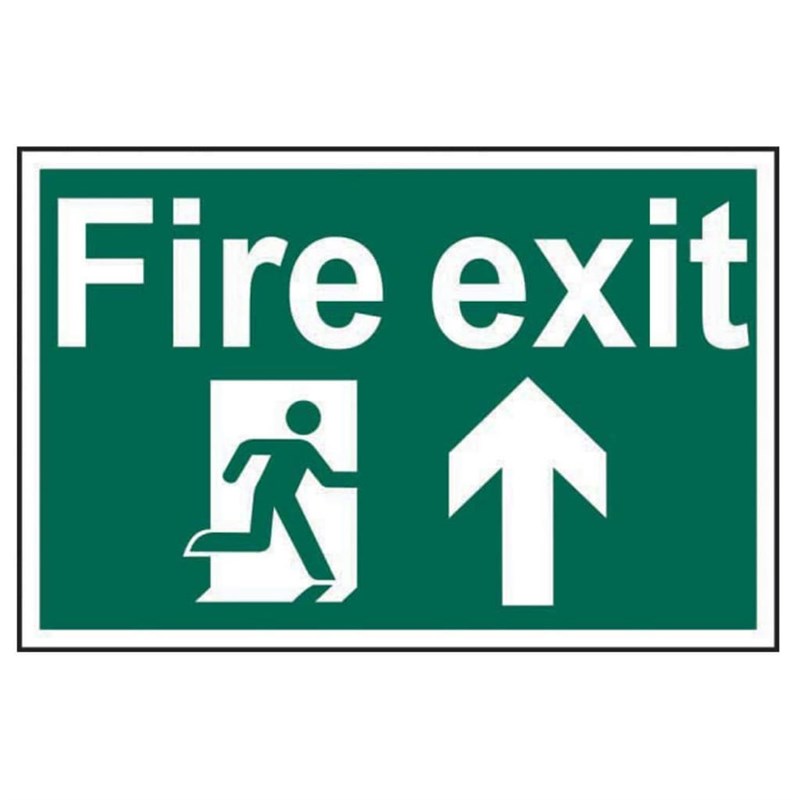 The Centurion 1505 “Fire Exit” Sign featuring the running man with upward arrow provides clear directional guidance to indicate an evacuation route leading straight ahead. Manufactured from 1.2mm recyclable semi-rigid polypropylene, this sign supports fast and safe evacuation and complies with BS EN ISO 7010 for consistent fire safety communication.