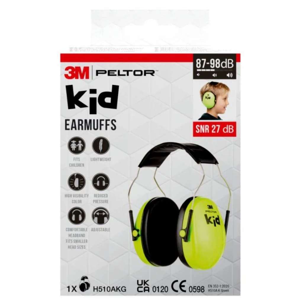 The 3M H510AKG Peltor Kid Earmuffs are specially designed hearing protection for children, offering reliable noise reduction in loud environments. Lightweight and comfortable, they feature a low-profile design with wide, cushioned ear cups for a secure and gentle fit. Ideal for concerts, sporting events, or noisy surroundings, these earmuffs help protect young ears while ensuring comfort during extended use.
