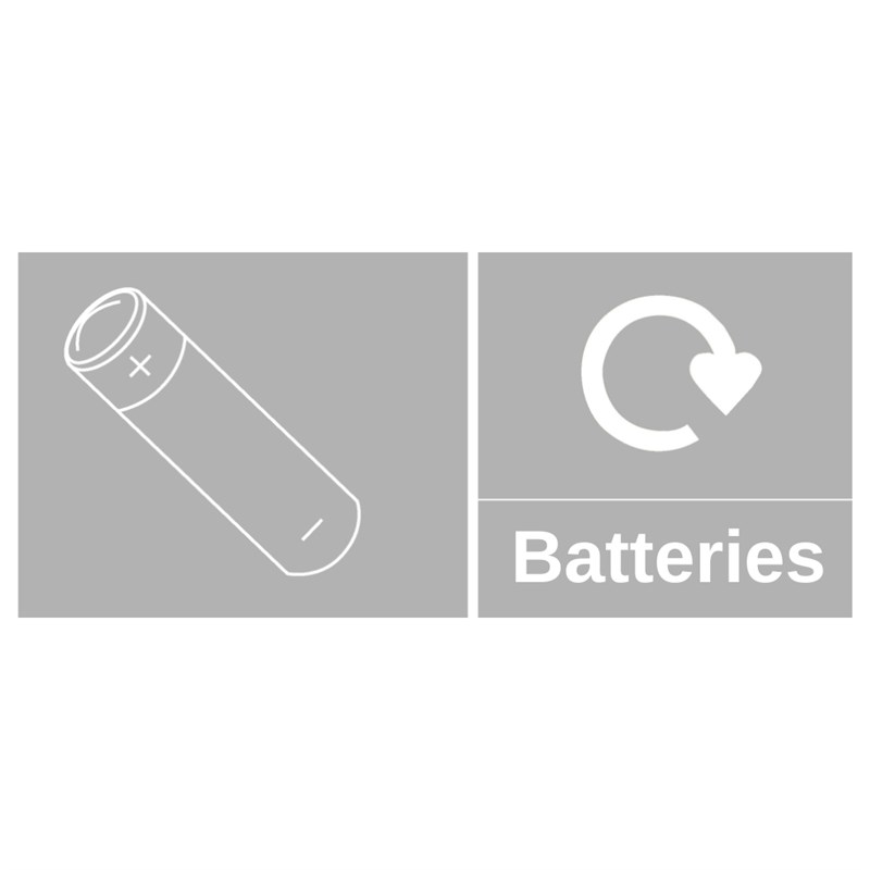 The UGroup BATTERIESGRAPHIC Battery Recycling Graphic is a self-adhesive label designed to clearly identify recycling bins and their designated contents. Featuring white graphics on a clear background, this graphic ensures easy recognition and encourages proper recycling practices. Ideal for use in offices, schools, and public spaces, this recycling graphic enhances waste segregation by clearly marking bins intended for designated recycling. Proper placement of this graphic aids users in correctly disposing of recyclable materials, supporting environmental sustainability efforts.