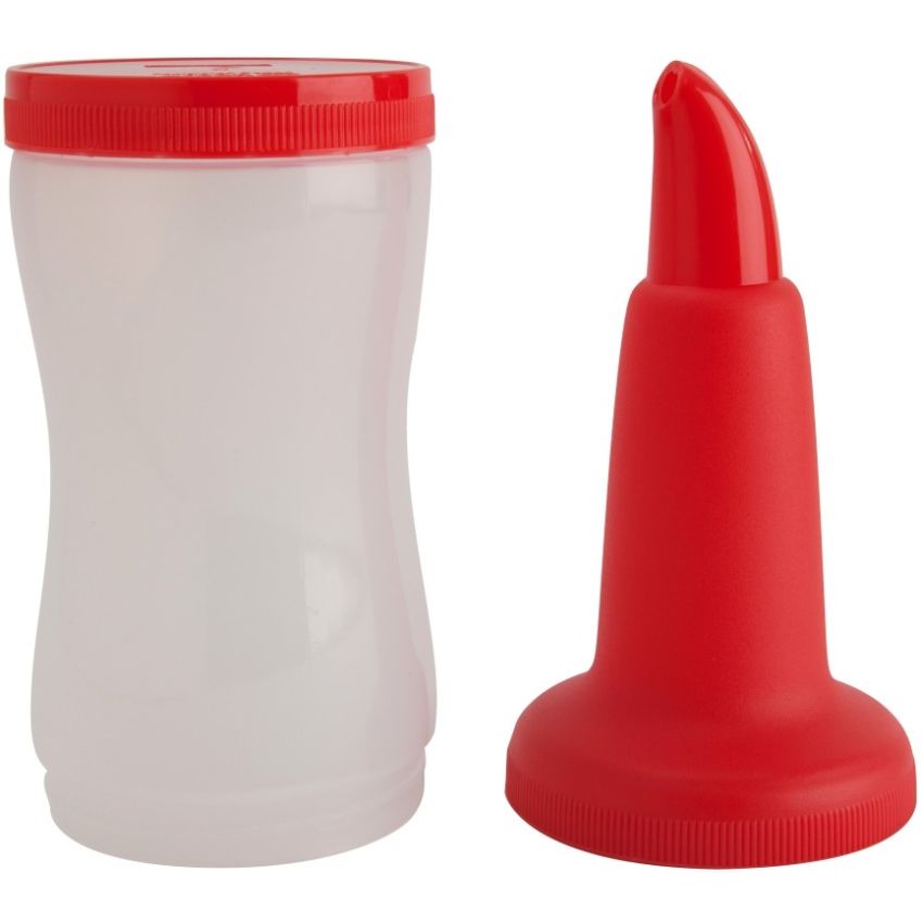 The Beaumont 3320R Freepour Bottle has been designed for efficient liquid dispensing, commonly used in bars and kitchens. Its features include a textured body for a secure grip, a colour-coded cap for easy identification, and a dishwasher-safe design for convenient cleaning.