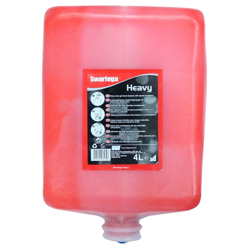 The Swarfega SHD4LTR Heavy Duty Hand Cleanser is a robust cleaning solution formulated for the effective removal of stubborn industrial contaminants such as oil, grease, and adhesives. Containing non-abrasive scrubbing agents, it deeply cleans without damaging the skin. Ideal for use in engineering, automotive, and industrial environments, this cleanser delivers powerful performance while helping to maintain skin health.