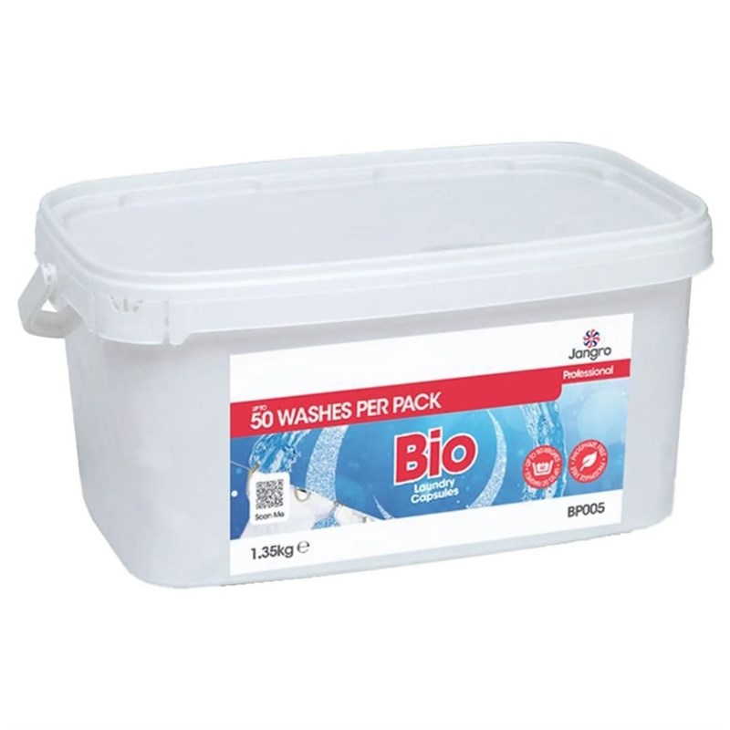 The Jangro BP005 Bio Laundry Capsules are convenient, pre-measured capsules designed to deliver powerful cleaning performance in every wash. Formulated with biological enzymes, they effectively break down stains and remove dirt even at lower temperatures. Ideal for commercial and domestic use, these capsules offer a hassle-free, efficient laundry solution with excellent results.