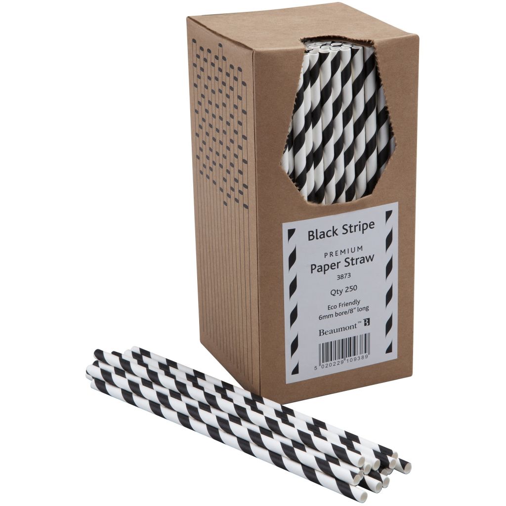 The Beaumont 3873 Paper Straws (Pack of 250) are a great alternative to traditional plastic straws. Made from food-grade, natural glues and inks, they straws are perfect for reaching into deep drinks. Thanks to their 6mm bore, the straws make it easy to drink anything from soft drinks to milkshakes. Additionally, the straws are made from wood pulp that will completely break-down in commercial composting facilities.