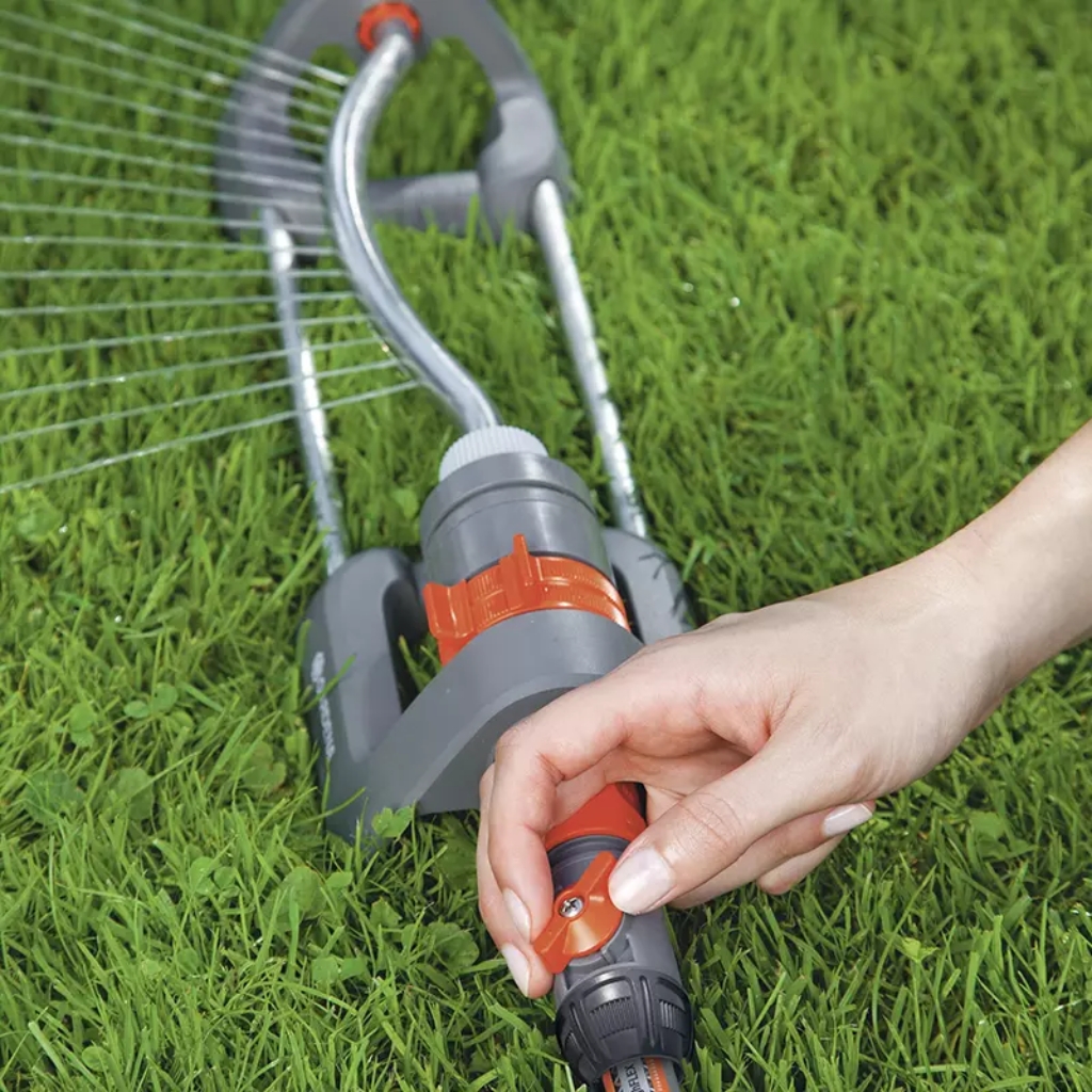 The Gardena 02942-20 Hose Connector with Control Valve is a practical hose fitting designed to provide convenient water control directly at the hose end. It highlights an integrated control valve and water stop function, allowing you to change attachments without turning off the tap. Built for durability with a secure grip connection, it ensures reliable, leak-free performance for everyday watering tasks.