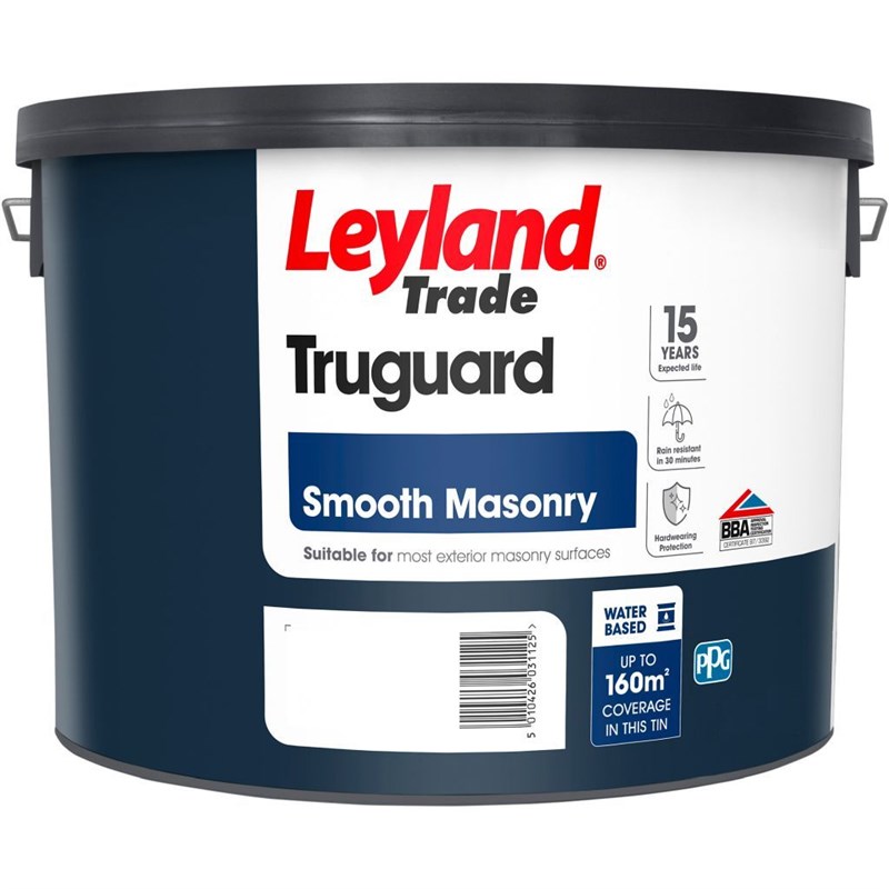 The Leyland Trade 303681 Truguard Smooth Masonry Paint is a smooth, durable coating, which maintains and enhances the original texture of the underlying surface. Suitable for most exterior masonry surfaces, offering excellent resistance to the accumulation of dirt, protecting against weathering and atmospheric pollution.