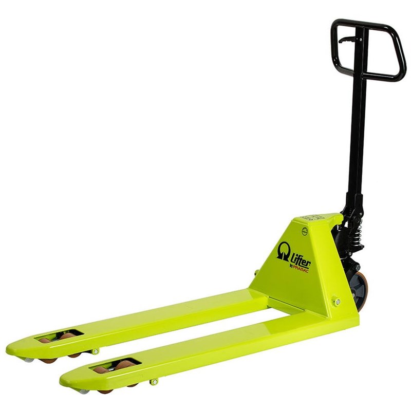 The Pramac TEB41AVY100 GS EVO Hand Pallet Truck is built for professional use, providing ease of operation and robustness. Its hydraulic unit is crafted with precision, featuring a monolithic design that ensures high reliability and protection against damage. The pallet truck is finished with a high-quality powder coating for maximum resistance to wear and environmental factors.