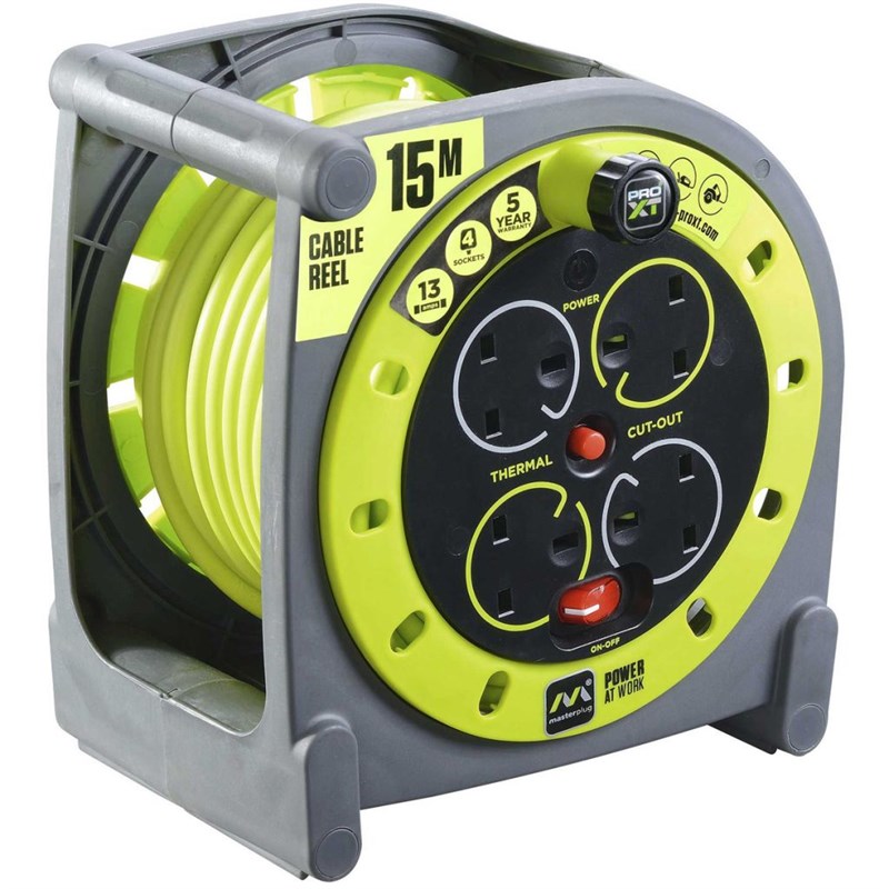 Cable Reel 240v 15Mtr 4 Way Masterplug PRO XT