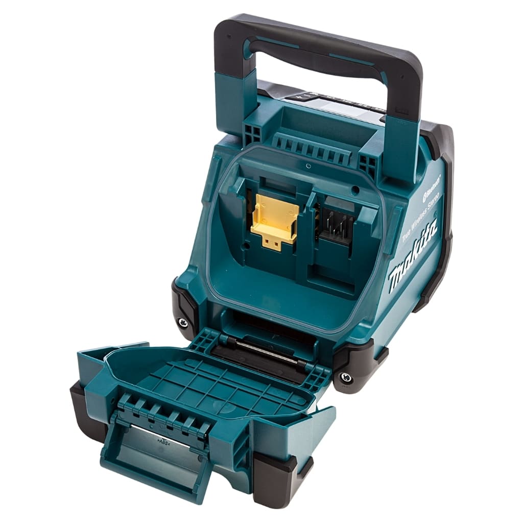 The Makita DMR203 CXT/LXT Bluetooth Speaker is a rugged and portable audio solution designed for use on job sites and in workshops. Compatible with Makita CXT and LXT batteries, it delivers powerful, high-quality sound via Bluetooth connectivity. Featuring a durable, splash-proof design and easy-to-use controls, this speaker ensures reliable performance in demanding environments.