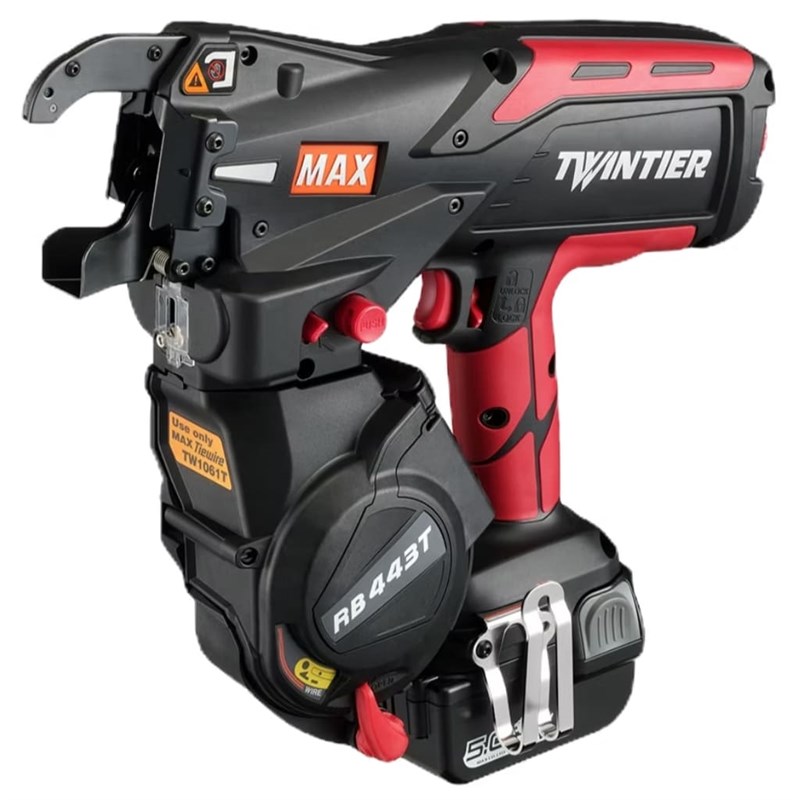 The Max RB441T Twintier Rebar Tying Tool is a fast and efficient cordless tool designed for securing rebar in construction applications. Featuring a durable and ergonomic design, it automates the tying process with consistent tension and speed, reducing manual effort and increasing productivity. Its compact size allows easy handling in tight spaces, making it ideal for professional contractors and builders.