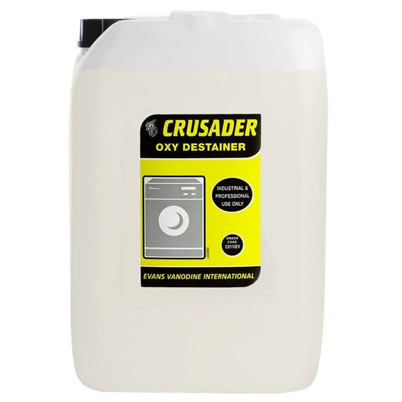The Evans Vanodine C011IEV Crusader Oxy Destainer is a powerful oxygen-based bleaching agent designed to remove tough stains from laundry. Ideal for use in professional laundry operations, it effectively lifts organic stains such as tea, coffee, and wine without damaging fabrics. Suitable for use on both white and coloured items, it ensures bright and hygienically clean results.