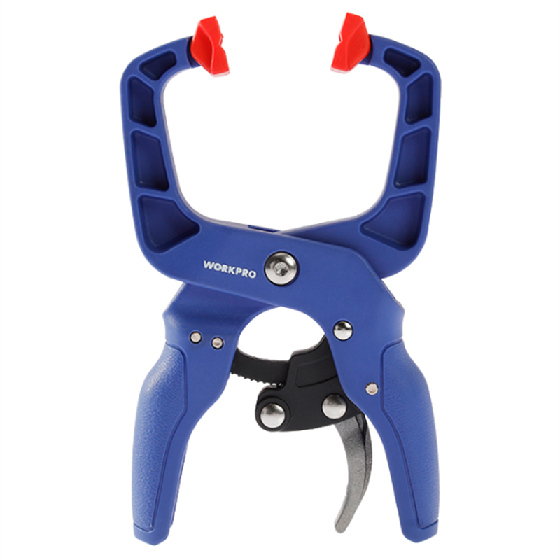 The WORKPRO WP232015WE 100 mm (4") Ratcheting Spring Clamp is a durable, quick‑acting clamp ideal for fixing, installation, woodworking, and photography setups. Its reinforced nylon body, strong ratchet mechanism, and quick‑release lever deliver secure, adjustable holding power with one‑handed convenience. Dual swivel pads conform to irregular surfaces, protecting workpieces while maintaining a firm grip.