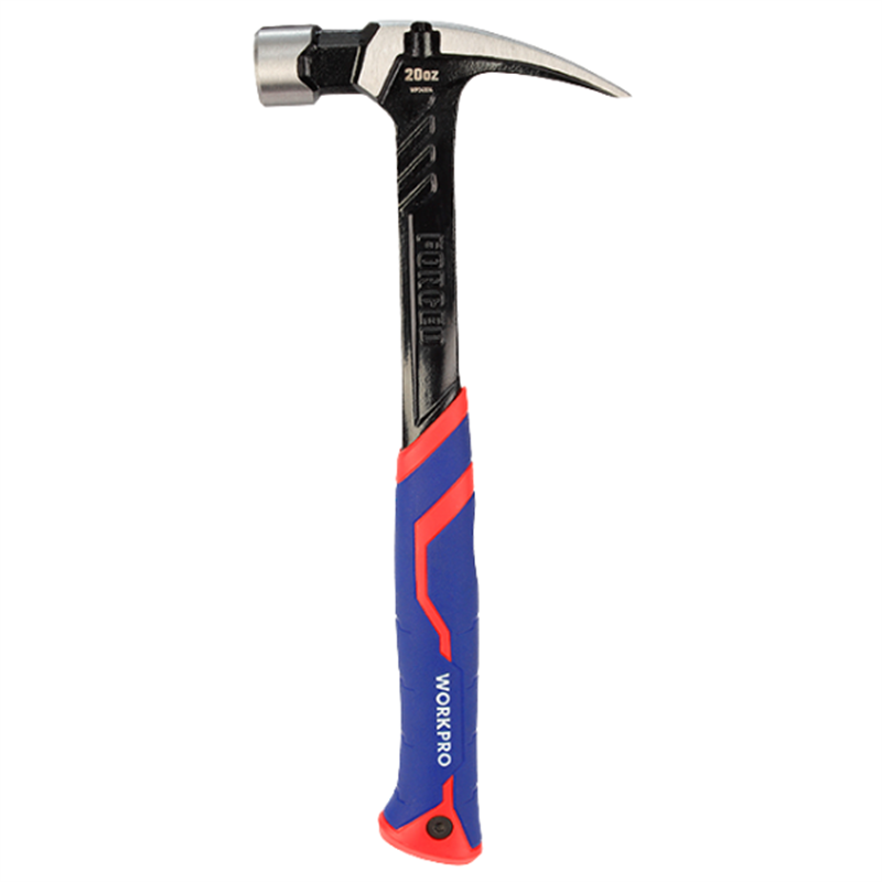 The WORKPRO WP241014 Claw Hammer is a professional one-piece forged steel hammer designed for everyday site and workshop use. It features a comfortable, shock-absorbing TPR grip and a magnetic nail holder for safer, one‑handed nail starts. With a curved claw and side nail puller for easy extraction, the 20 oz (560 g) head is well balanced for accurate driving in framing, woodworking, installation, and general repairs.