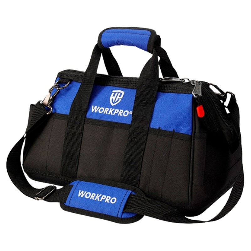 The WORKPRO WP281026 20" (510 mm) Close‑Top Wide‑Mouth Tool Bag with Waterproof Moulded Base is a rugged soft‑storage carrier for hand tools and accessories. Made from tough 600D polyester with an internal frame, 21 pockets and a hard waterproof base, it keeps tools organised, protected and easy to access on site and in the workshop.