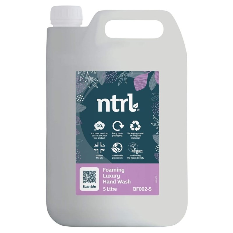 The Jangro BF002-5 ntrl Foaming Luxury Hand Wash is an eco-friendly, luxurious hand cleanser that delivers a soft, rich foam for an indulgent washing experience. Formulated with naturally derived ingredients, it gently cleanses the skin while being kind to the environment. Ideal for use in eco-conscious commercial washrooms, it leaves hands feeling clean, soft, and lightly fragranced.