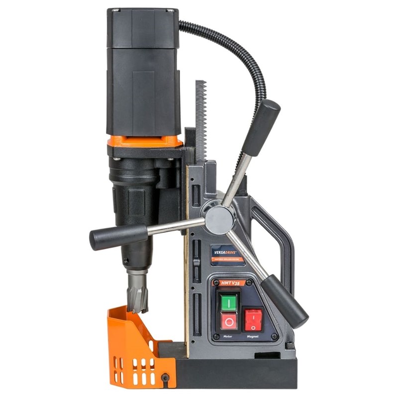 The HoleMaker Technology 850035-110 VersaDrive V35 Magnet Drill is a compact and powerful magnetic drilling machine designed for precision and performance in demanding metalworking tasks. Operating on 110V, it features a robust motor and strong magnetic base for stable and accurate drilling. Compatible with the VersaDrive system, it allows for quick-change tooling and efficient cutting in steel and other tough materials, making it ideal for construction, fabrication, and engineering applications.